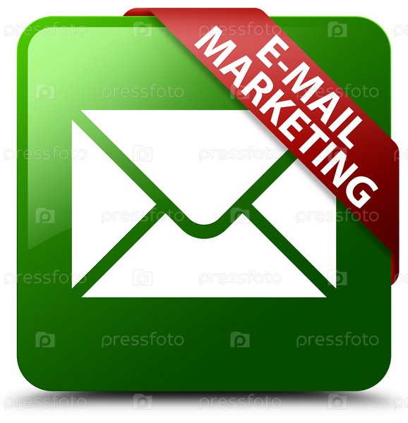 Маркетинг по электронной почте зеленый квадратный кнопка красная лента в углу