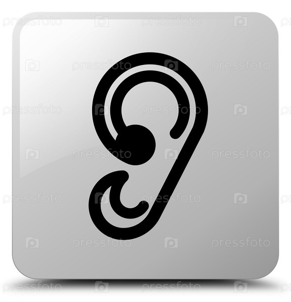 Икона ушей белая квадратная кнопка