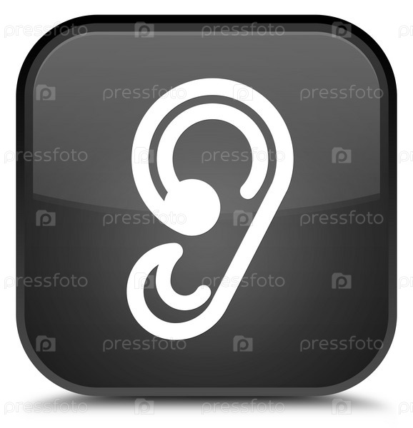 Икона ушей специальная черная квадратная кнопка