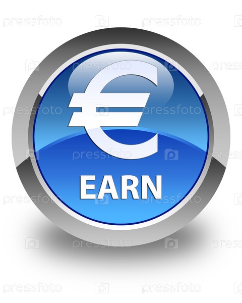 Заработать (знак евро) блестящая голубая круглая кнопка