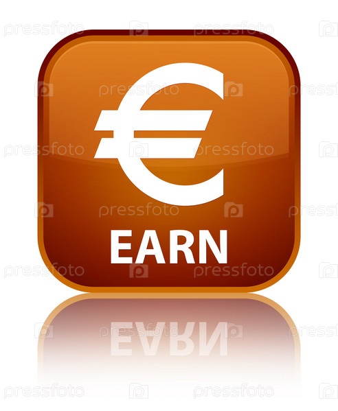 Заработать (знак евро) специальная коричневая квадратная кнопка