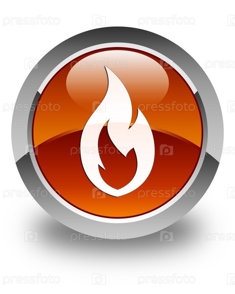 Икона огненного пламени блестящая коричневая круглая кнопка