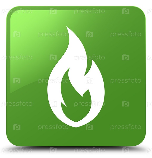 Икона огненного пламени мягкая зеленая квадратная кнопка
