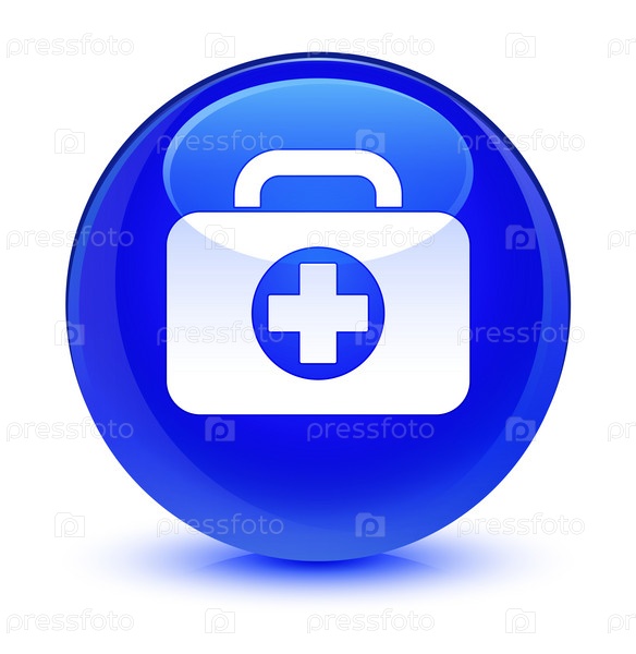 Икона пакета первой помощи стеклянный синий круглый кнопка