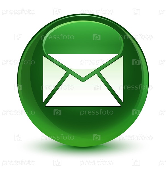 Икона электронной почты стеклянная мягкая зеленая круглая кнопка