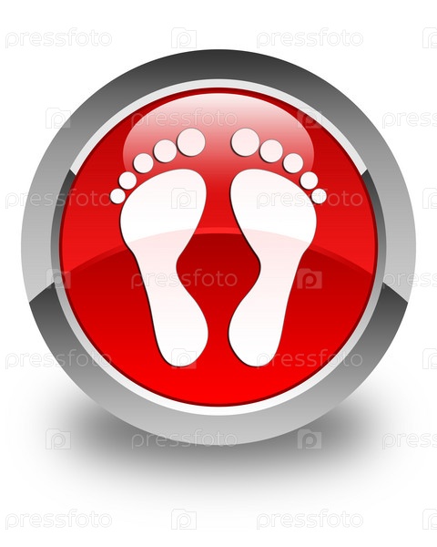 Икона отпечатков следов глянцевая красная круглая кнопка