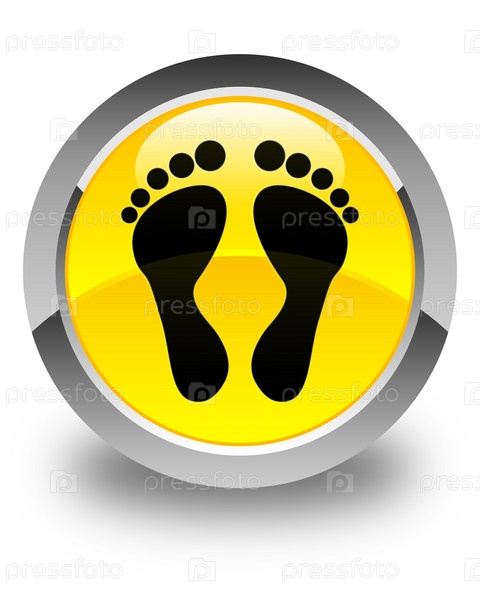 Икона отпечатков следов глянцевая желтая круглая кнопка