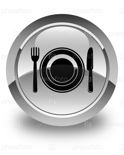 Икона пищевой тарелки блестящая белая круглая кнопка