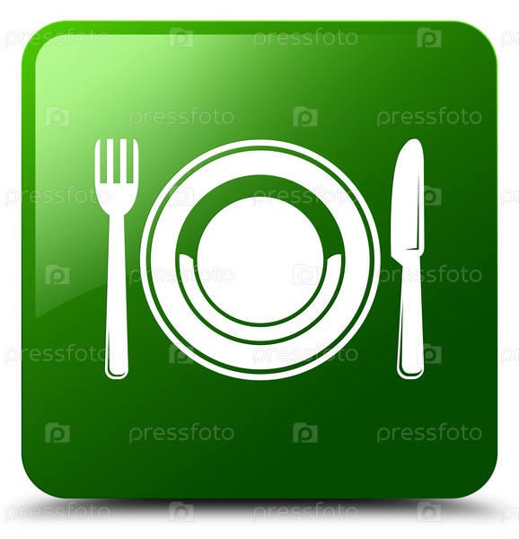 Икона пищевой тарелки зеленая квадратная кнопка
