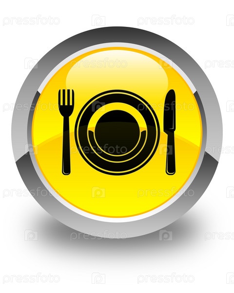 Икона пищевой тарелки глянцевая желтая круглая кнопка