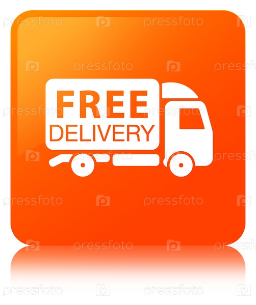 Икона бесплатного грузовика для доставки оранжевой квадратной кнопки