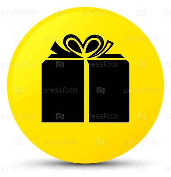 Икона коробки подарков желтая круглая кнопка