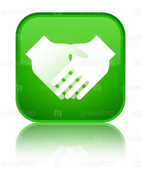Икона рукопожатия специальная зеленая квадратная кнопка