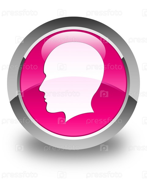 Голова мужского лица икона глянцевая розовая круглая кнопка
