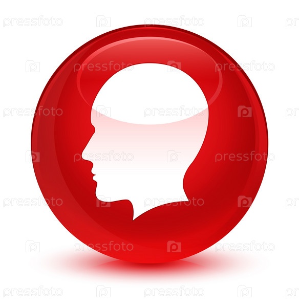 Голова мужского лица икона стеклянная красная круглая кнопка