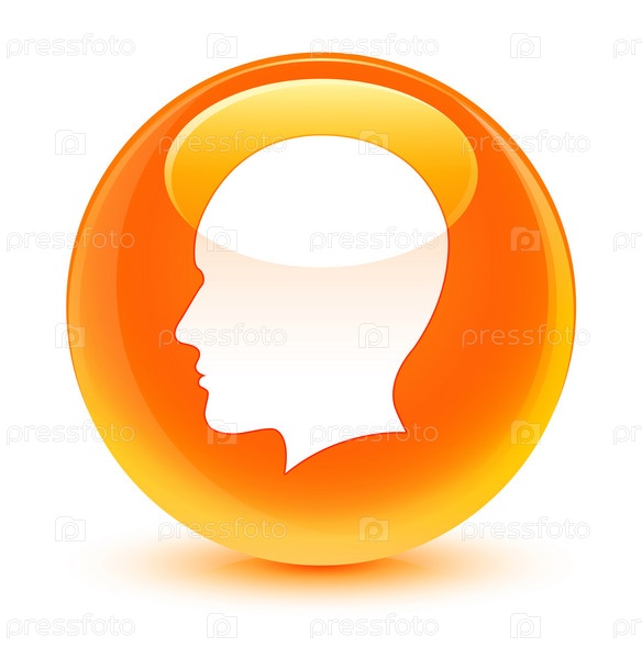 Голова мужского лица икона стеклянный оранжевый круглый кнопка