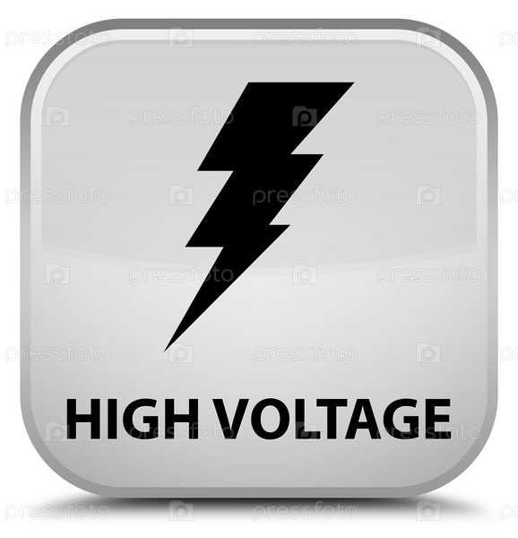 Высокое напряжение (икона электричества) специальная белая квадратная кнопка