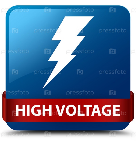 Высокое напряжение (икона электричества) синяя квадратная кнопка красная лента посередине