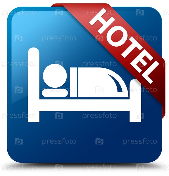 Отель синий квадратный кнопка красная лента в углу