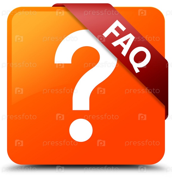 Часто задаваемые вопросы (икона вопроса) оранжевая квадратная кнопка красная лента в углу