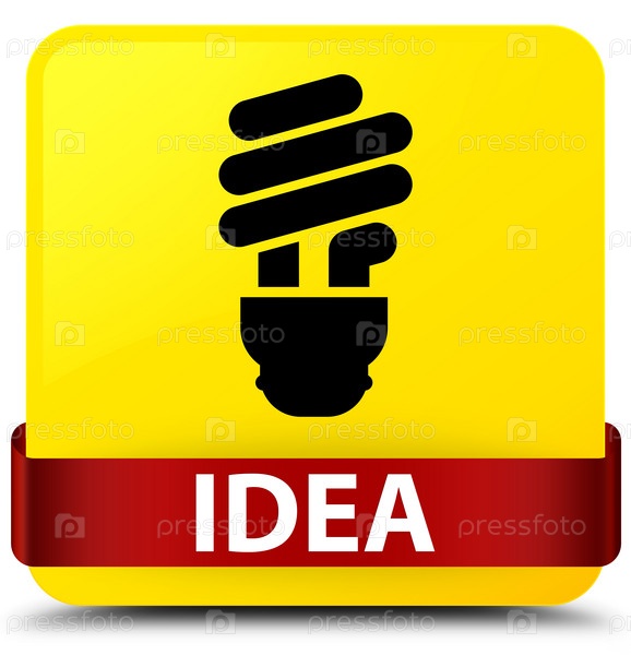 Идея (икона лампочки) желтая квадратная кнопка красная лента посередине