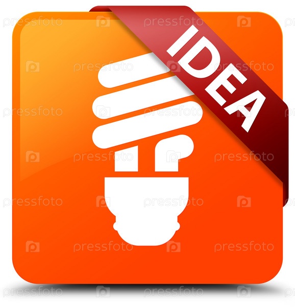 Идея (икона лампочки) оранжевая квадратная кнопка красная лента в углу