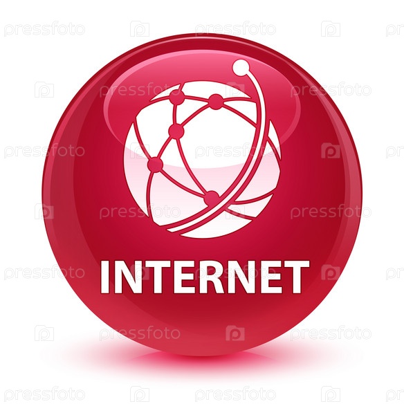 Интернет (икона глобальной сети) стеклянная розовая круглая кнопка