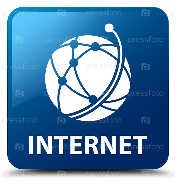 Интернет (икона глобальной сети) синяя квадратная кнопка