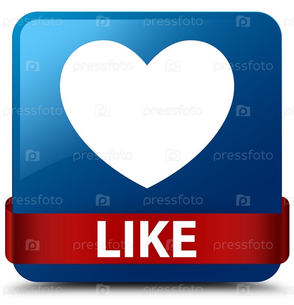 Как (икона сердца) синяя квадратная кнопка красная лента посередине