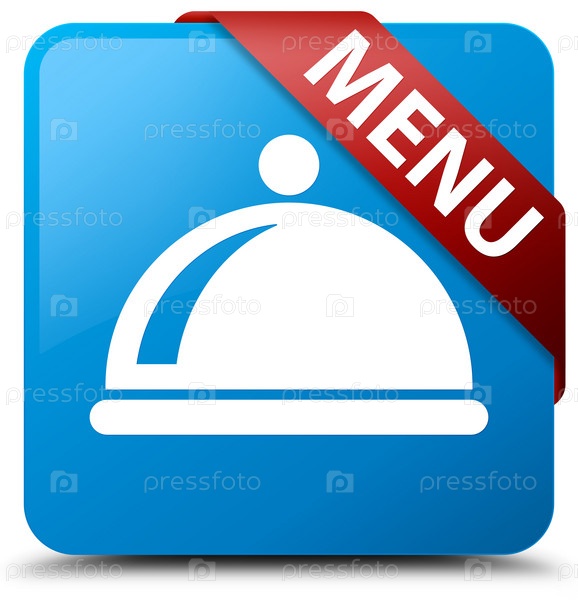 Меню (икона блюда) цыановый синий квадратный кнопка красная лента в углу