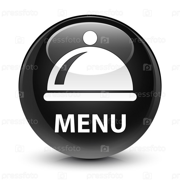 Меню (икона блюда) стеклянная черная круглая кнопка