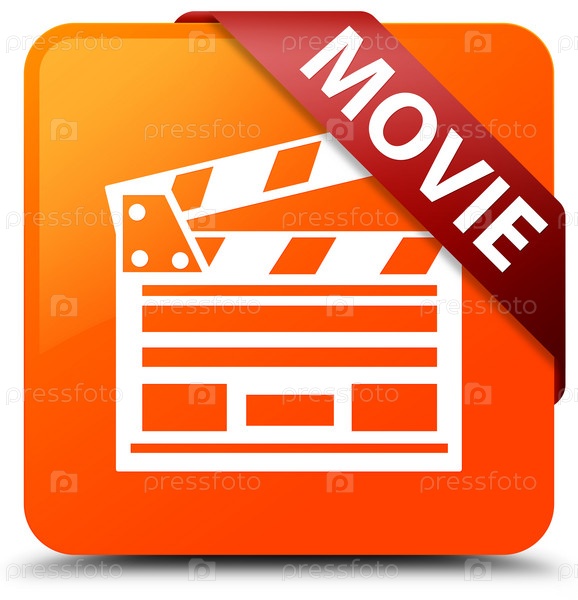 Movie (cinema clip icon) оранжевая квадратная кнопка красная лента в углу