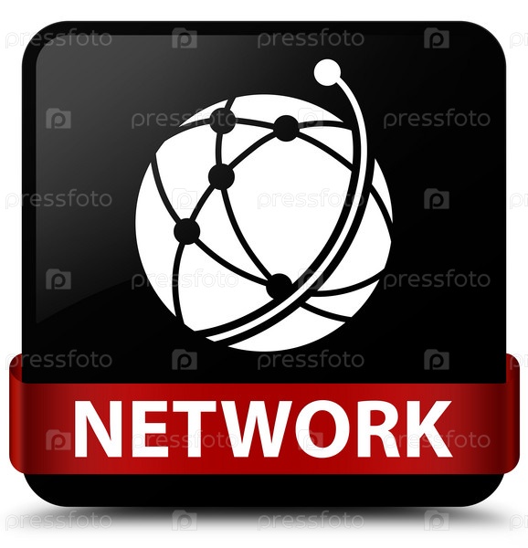 Сеть (икона глобальной сети) черная квадратная кнопка красная лента посередине
