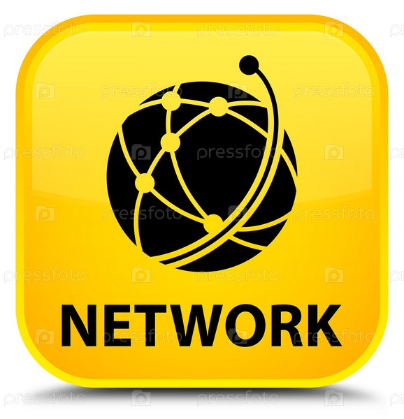 Сеть (икона глобальной сети) специальная желтая квадратная кнопка