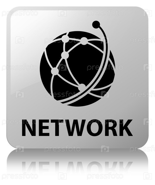 Сеть (икона глобальной сети) белая квадратная кнопка
