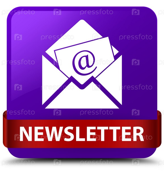 Новостной бюллетень фиолетовый квадратный кнопка красная лента посередине