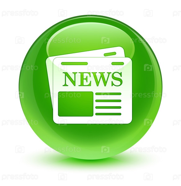 Икона газеты стеклянная зеленая круглая кнопка