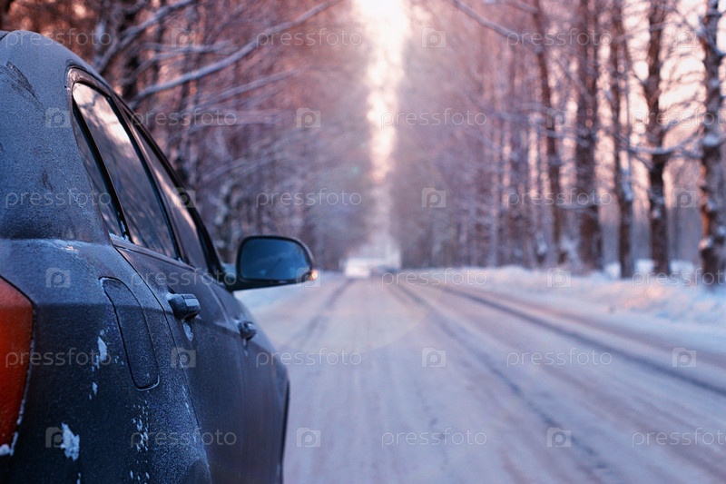 Автомобиль пустой дорожный переулок зимой