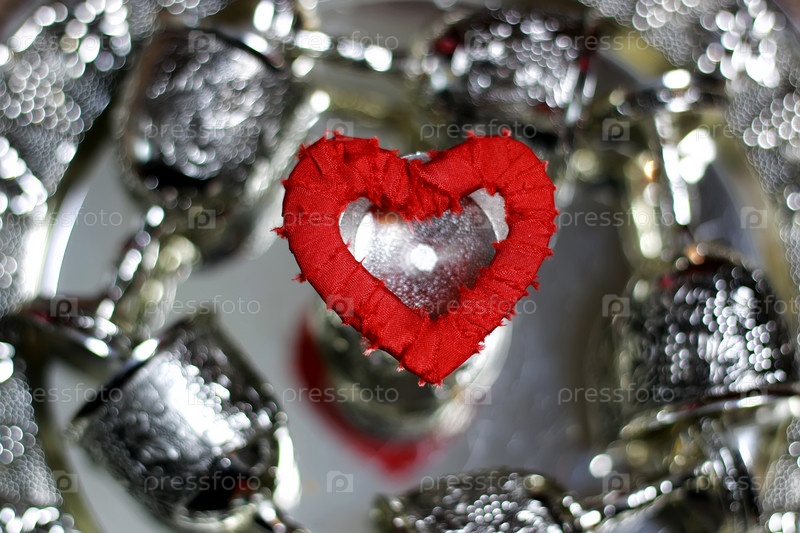 Сердечная форма серебряного цвета красный
