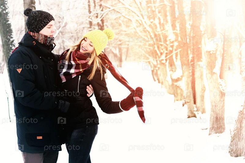 Пара влюбленных на улице зимнего солнца