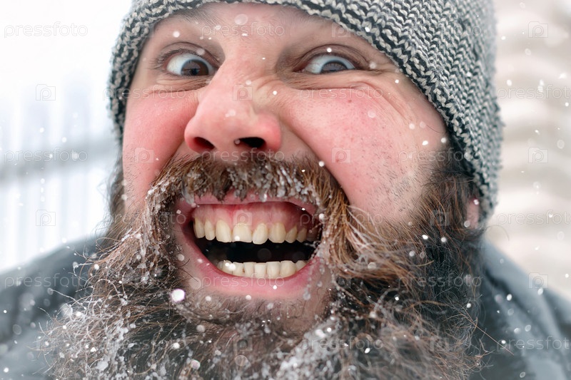 Бородатый человек лед снег зимой