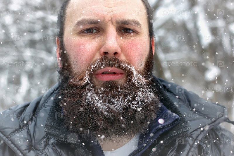 Бородатый человек лед снег зимой