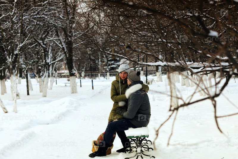 Влюбленные в парке зимой