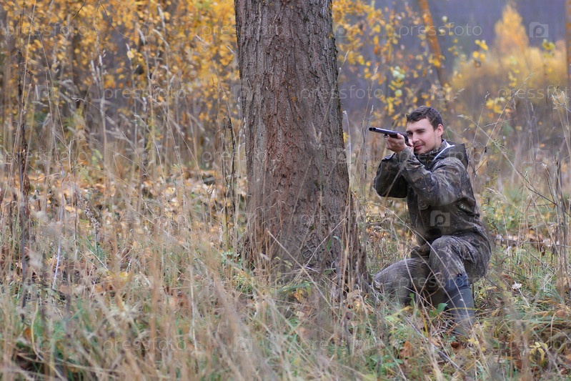 Охотник за человеком на открытом воздухе во время осенней охоты
