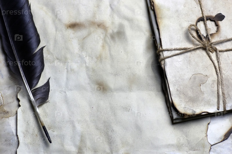 Старые бумажные письма с перьями