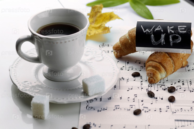 Утренняя чашка кофе кроассан