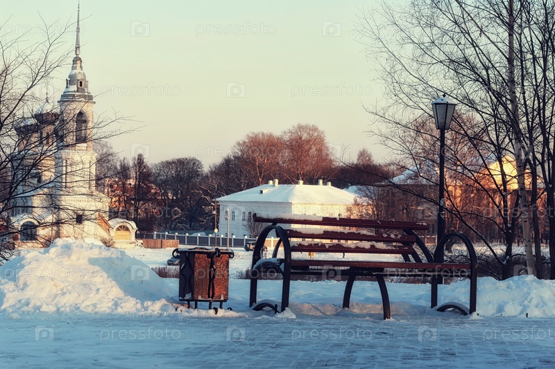 Зимняя уличная скамейка ретро
