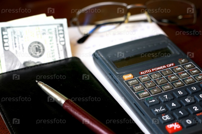 Калькулятор на столе очки деньги