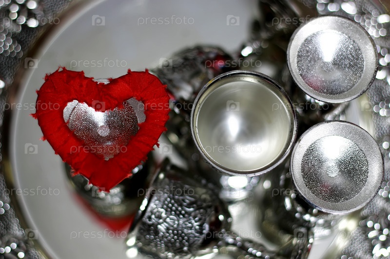Сердечная форма серебряного цвета красный