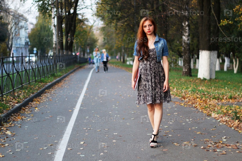 Папка с платьем рыжеволосой девушки с документами